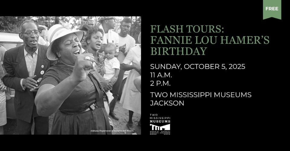 In honor of the 108th anniversary of Fannie Lou Hamer’s birthday, education staff from the Two Mississippi Museums will host free flash tours at 11 a.m. and 2 p.m. on Sunday, October 5. Fannie Lou Hamer was a pivotal figure in the civil rights movement, known for her relentless fight for voting rights and economic justice. Despite facing ongoing oppression, her unwavering activism left a lasting impact on civil rights and social justice. For more information, call 601-576-6850 or email info@mdah.ms.gov.